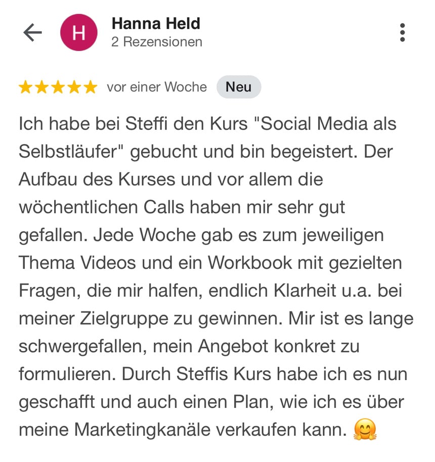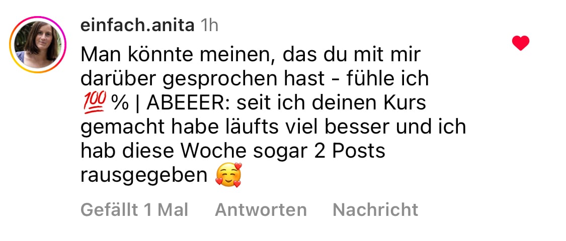 Instagram ist dann auch kein Selbstzweck mehr, mit dem du viel zu viel Zeit verbringst, sondern ein strategisches Werkzeug, das du klug für dein Business nutzt.